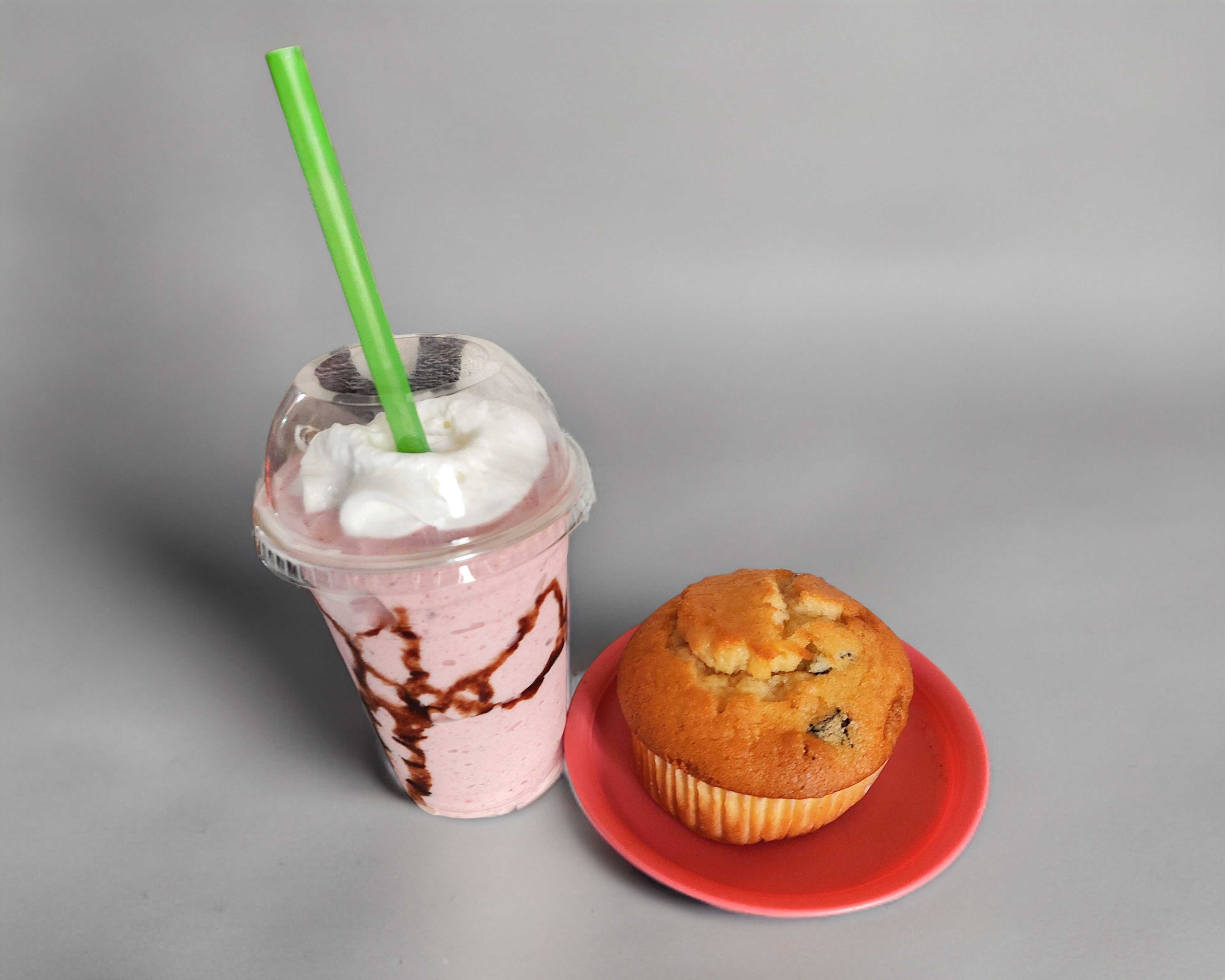 Frappé de Fresa*1 + Muffin De Vainilla Con Chispas De Chocolate*1