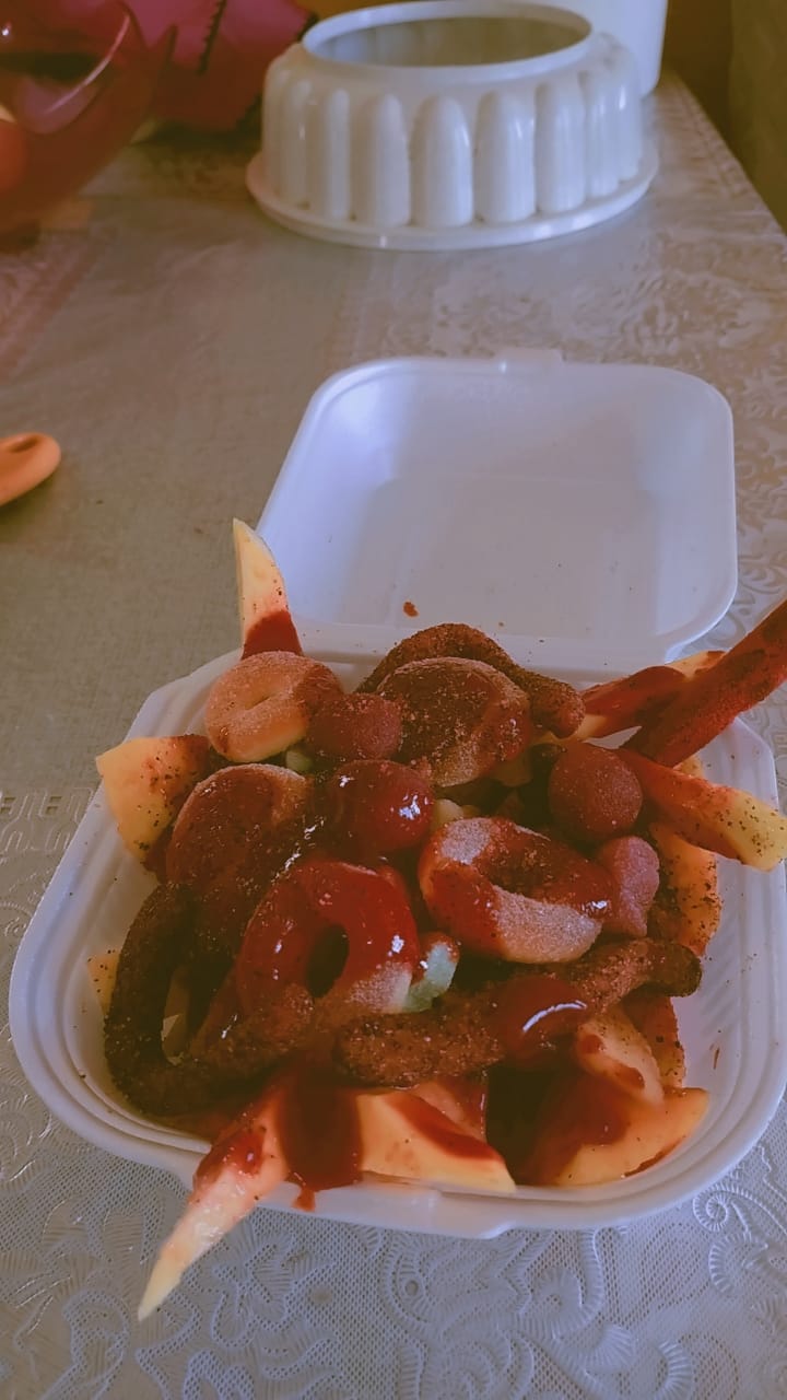 Manzana, Cobertura De Mora Azul,Gomitas, Chamoy y Miguelito