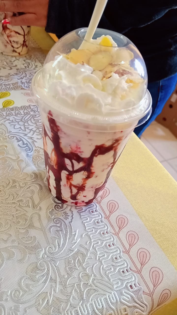 Fresa Congeladas Y Plátano Natural Con Crema Y Chantilly