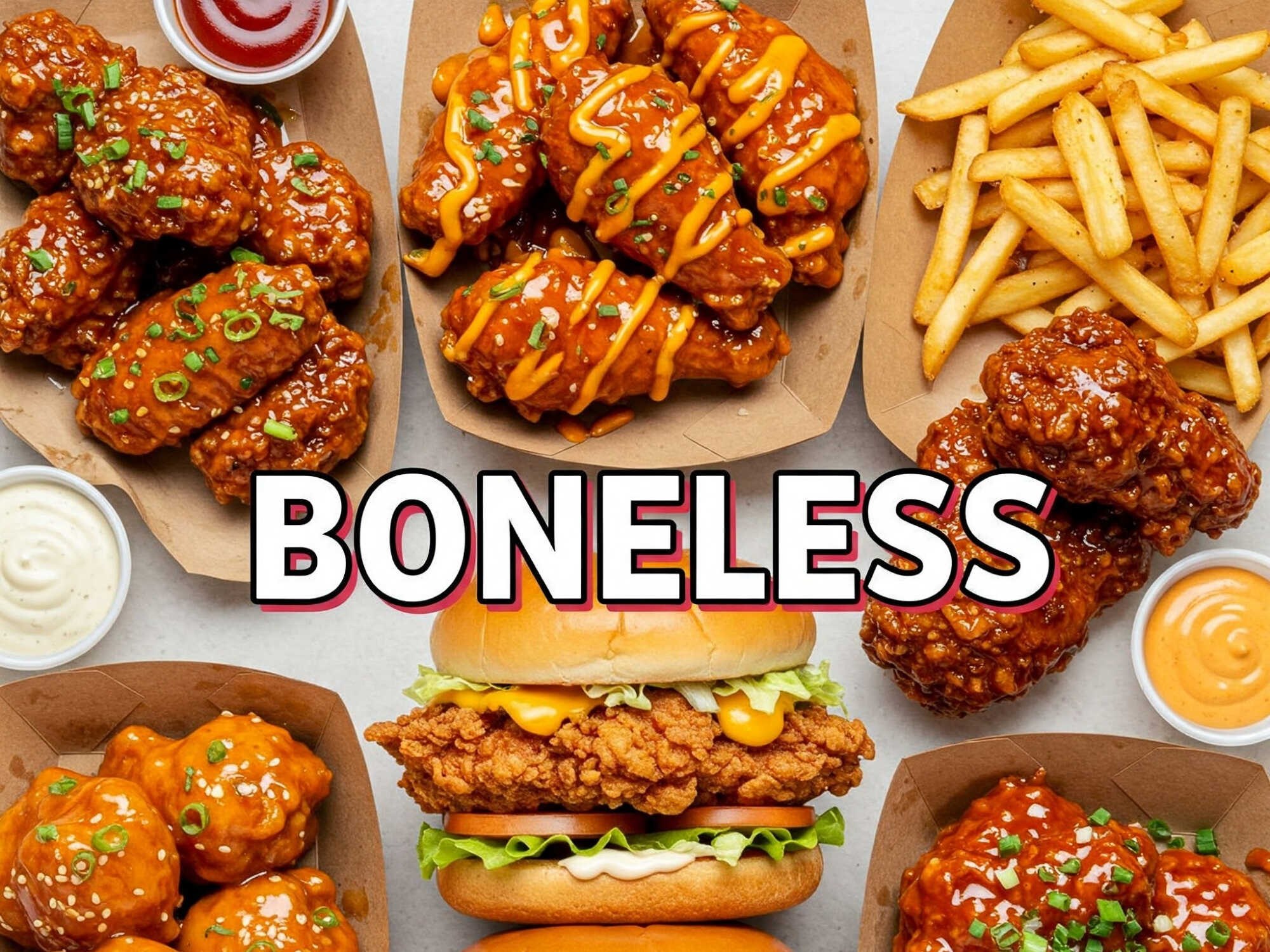 300 GRAMOS DE BONELESS 🧆 EN SALSA DE TU ELECCIÓN ACOMPAÑADO DE PAPAS FRITAS 🍟