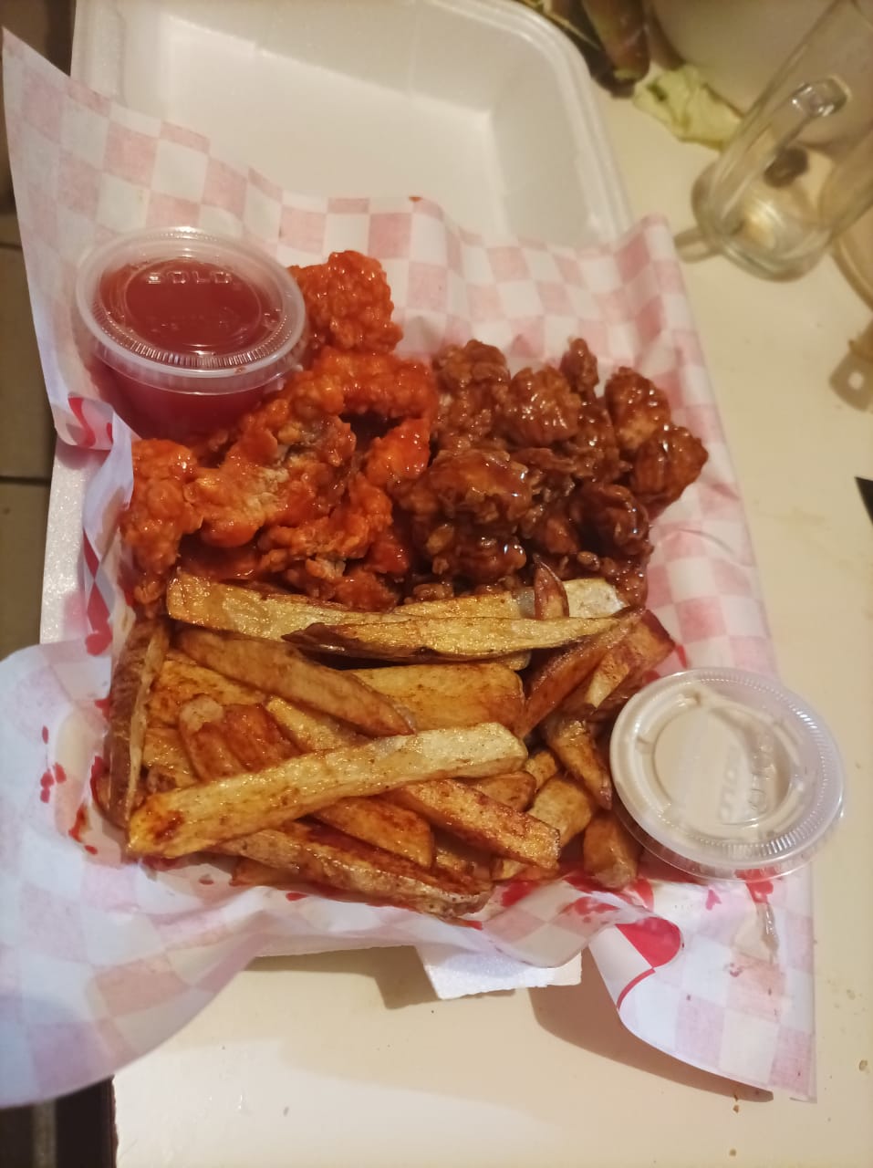Incluye papas, ranch y cátsup, un kilo.