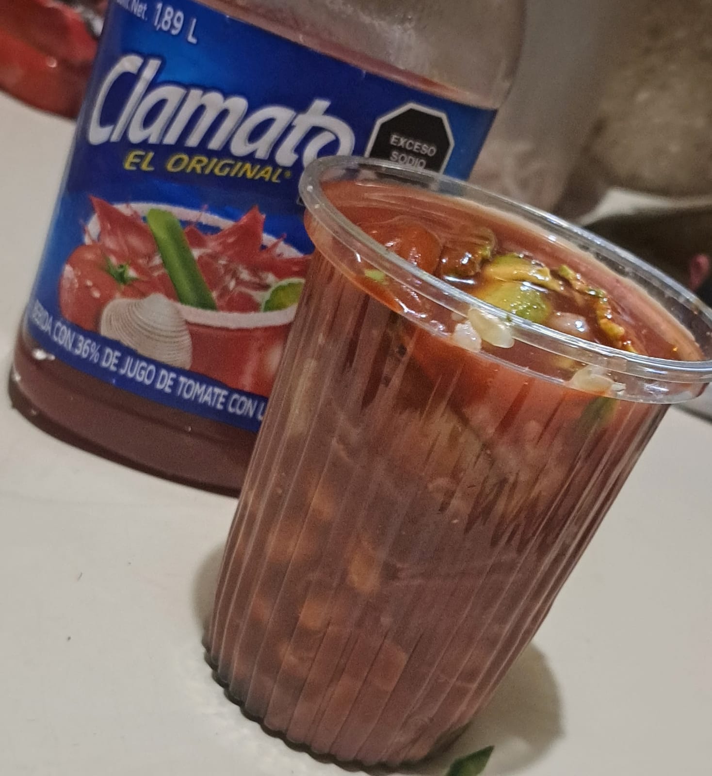 tostadita, cacahuate, pepino, cueritos, aguacate, salsa soya,salsa Valentina y Clamato