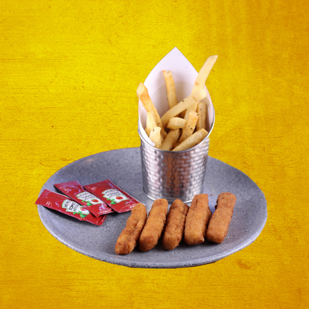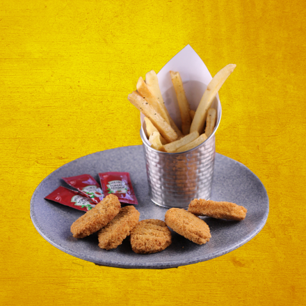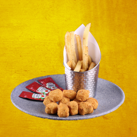 Palomitas de pollo crujientes acompañadas de papas fritas