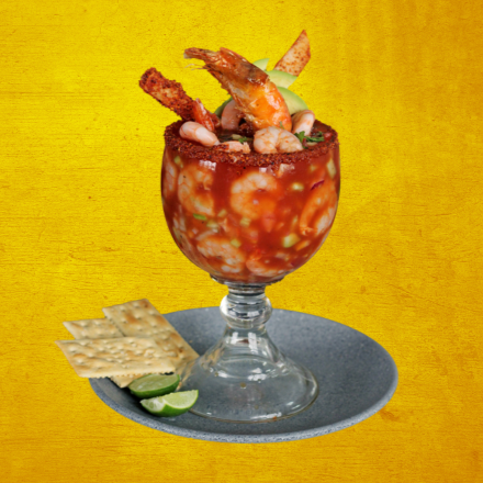 Camarón cocido, bañado en nuestra autentica salsa coctelera.