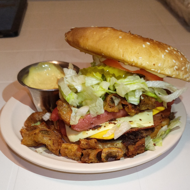 Hamburgesa con Carne Casera, Winnie, Jamon y Mezcla de Queso Cheddar con Jalapeño