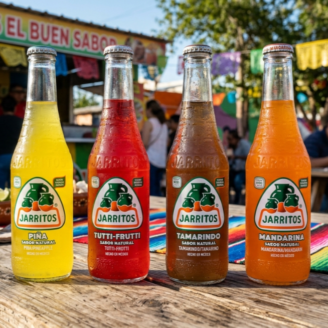 Hot dog gigante con carne al pastor y verduras y líquidos.