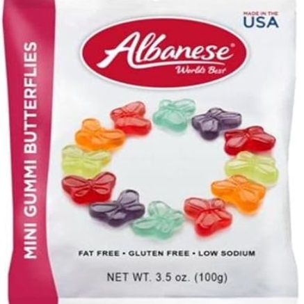 ¡Deléitate con las minimariposas de gomita! Experimenta el icónico sabor albanés en un tamaño perfecto para comer.