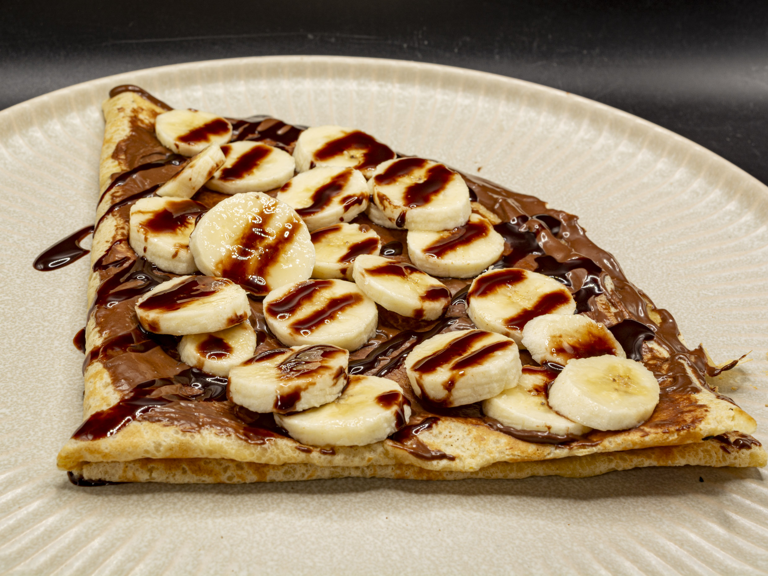 2 piezas de platano bañados en cobertura de chocolate mas un ingrediente a elegir como capa.