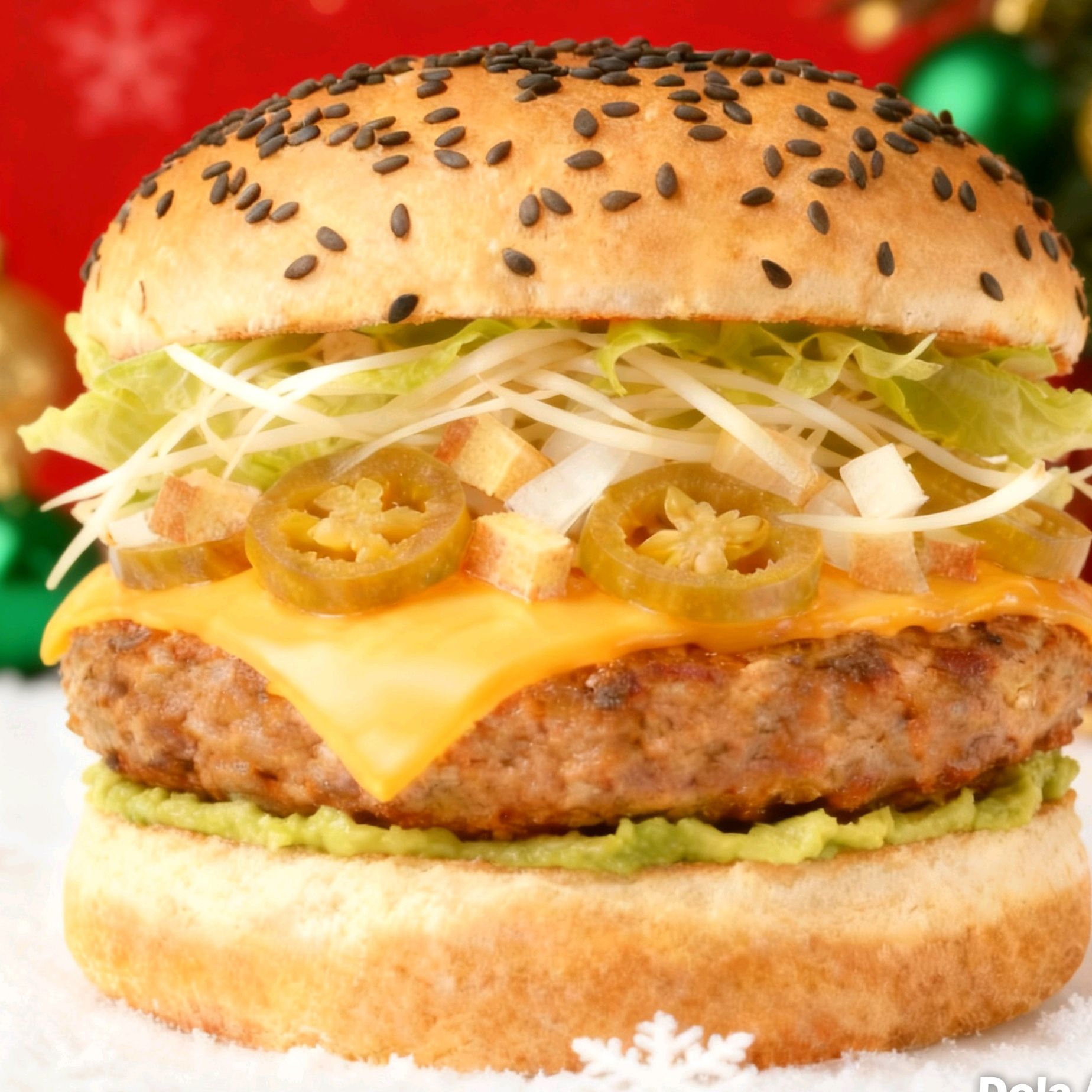 hamburguesa con carne 100% sirloin con cebolla winnie en trocitos queso filadelfia y chile california 3 liquidos aguacate y pepinillos incluye chile oreado aparte