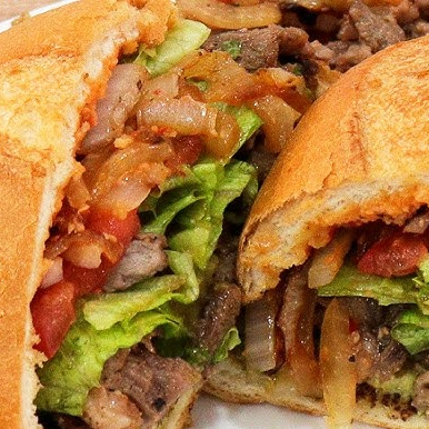 carne doble 100% sirloin con trocito de cebolla y winnie tiras de salchicha de asar y filete de pechuga de pollo bañada en salsa luisiana lechuga 3 liquidos aguacate pepinillos incluye chile aparte