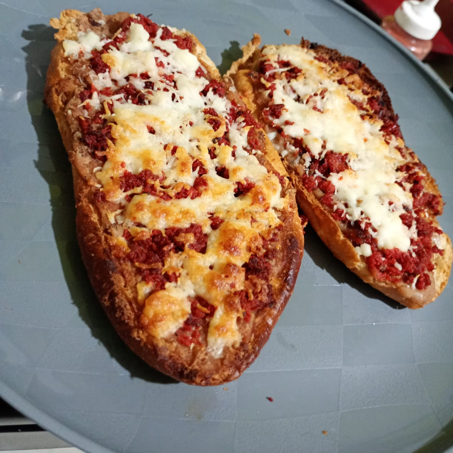 molletes preparados con frijol, queso y chorizo