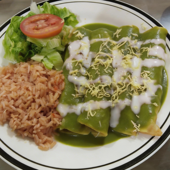 Enchiladas Verdes acompañadaas con Arroz y Ensalada de Lechuga