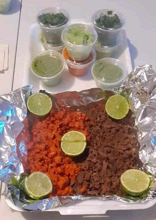 un kilo de pastor en trompo con sus tortillas salsas y verduras