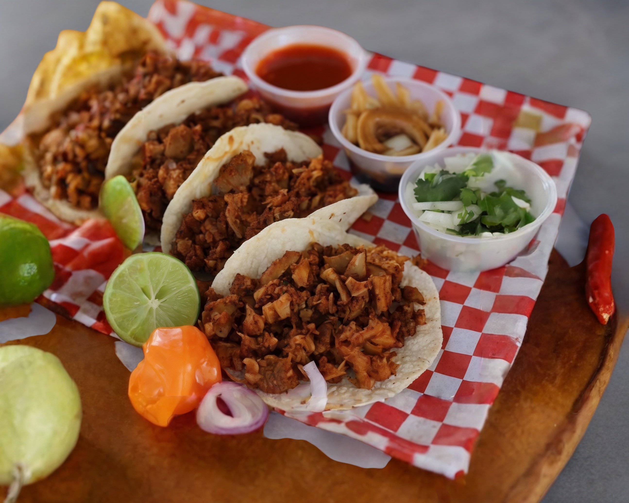 Tacos de tripitas siempre preparadas a tu gusto.