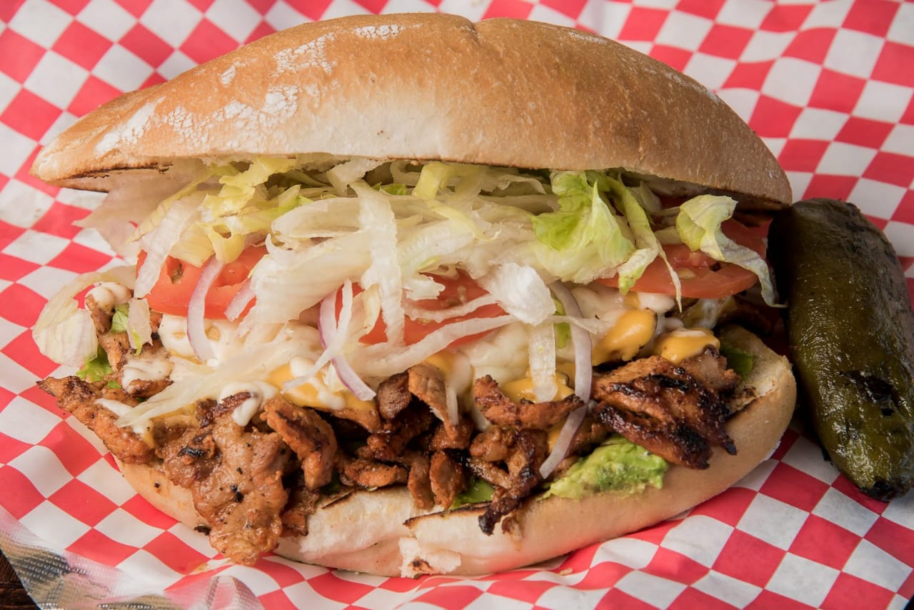 Hamburguesa de sirloin con queso amarillo, queso manchego y jamon. Le podemos agregar carne asada, tripitas o carne al pastor la que sea de tu preferencia, también agregamos lechuga, tomate, pepinillo, mayonesa, mostaza. ingredientes de 100% calidad.