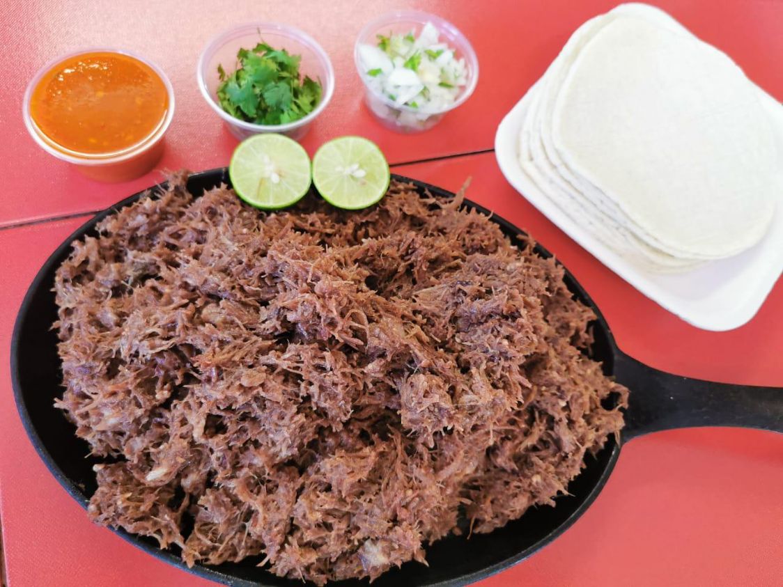 Rica barbacoa acompañada de tortillas salcitas y limón