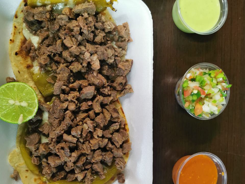 Quesadilla con carne asada, 4 unidades, en tortillas de harina estilo sonorense bien ricas y bien llenas de carne como debe ser.
