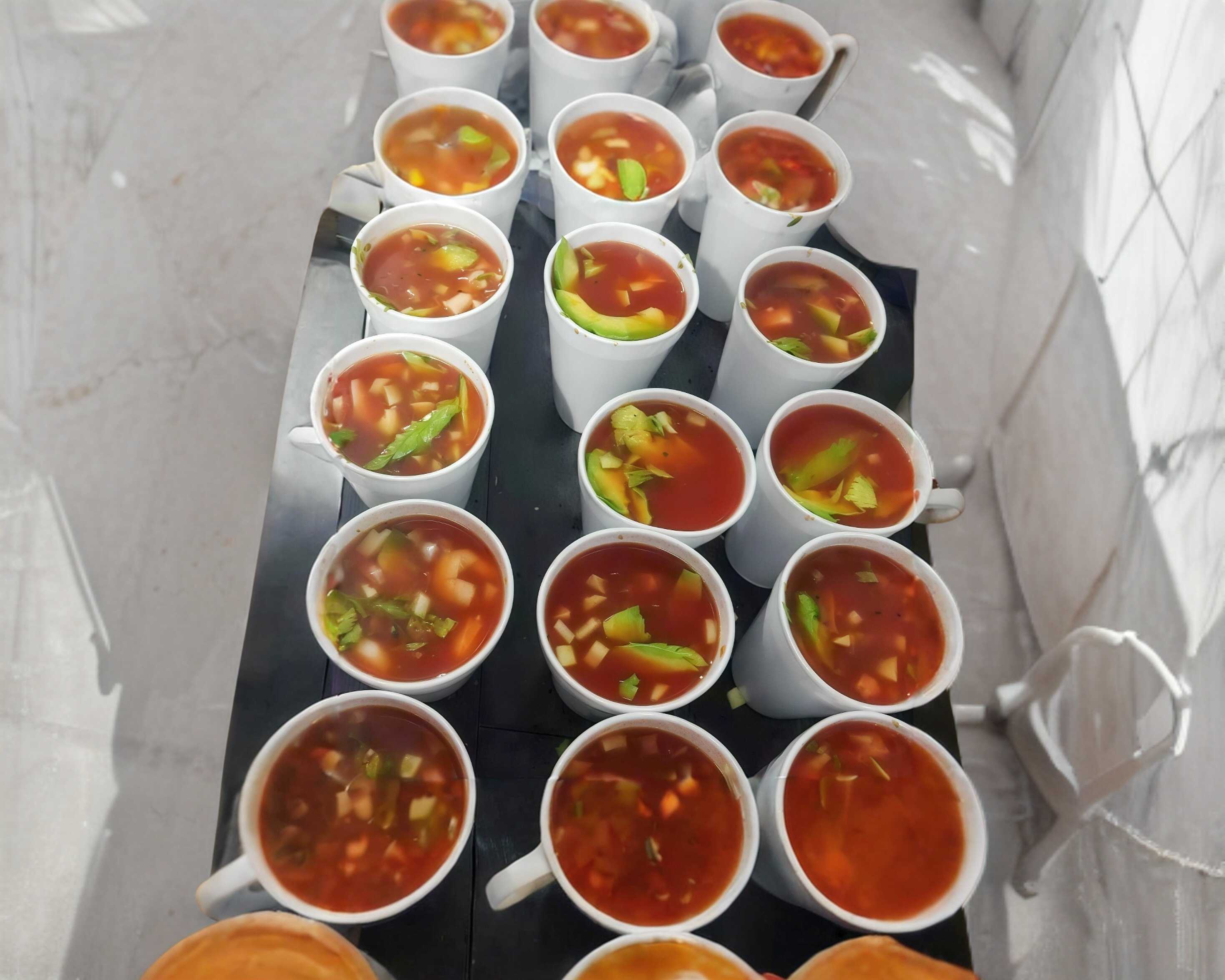 Clamato preparación especial de la casa, salsas y especies, apio y camarón fresco.