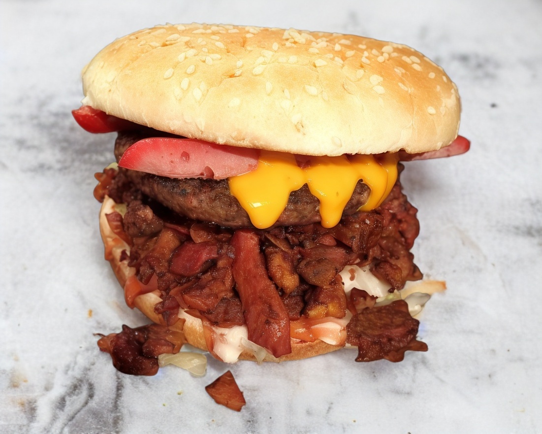 lechuga, carne para hamburguesa, queso amarillo, aguacate, winnie texano y carne de pastor