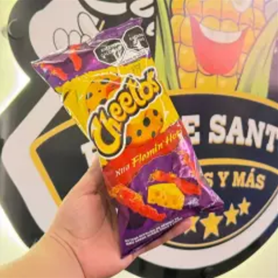 Estos son los tostitos con sabor xtra flamin' hot, se caracterizan por su color morado intenso y un sabor picante que combina queso, chile y limón.