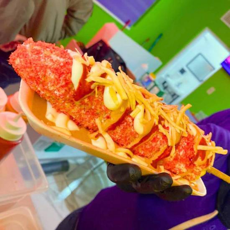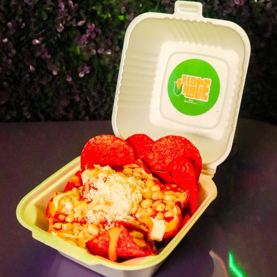 Papitas a elegir con elote, queso amarillo, queso en polvo y crema. Platillo personal.