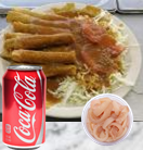 Orden con 3 flautas dobles (6 flautas chicas), acompañada de Verdura, Salsa de Tomate, Salsa Verde, Roja o de las 2.