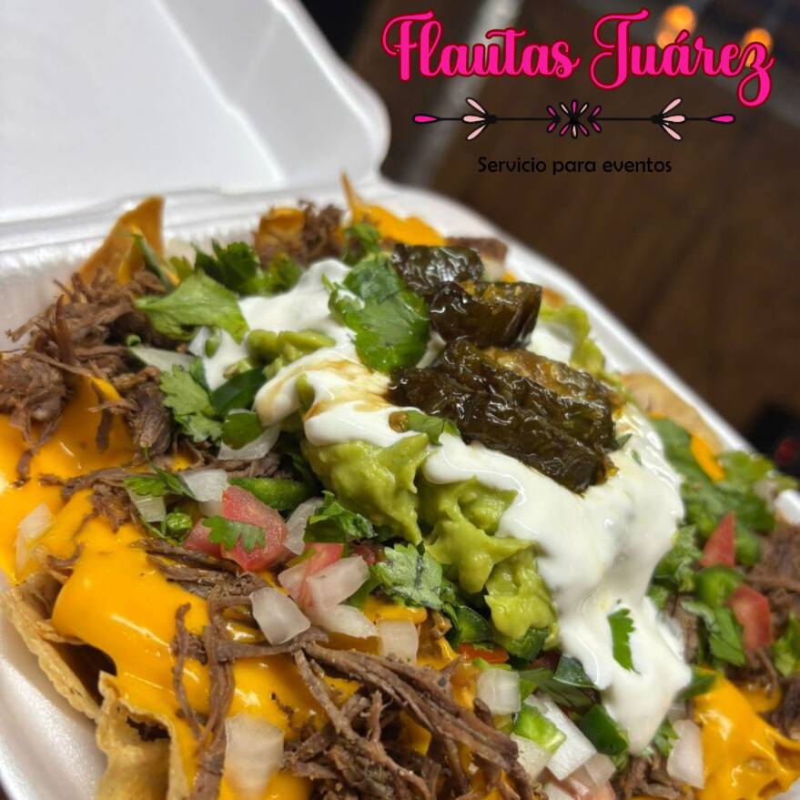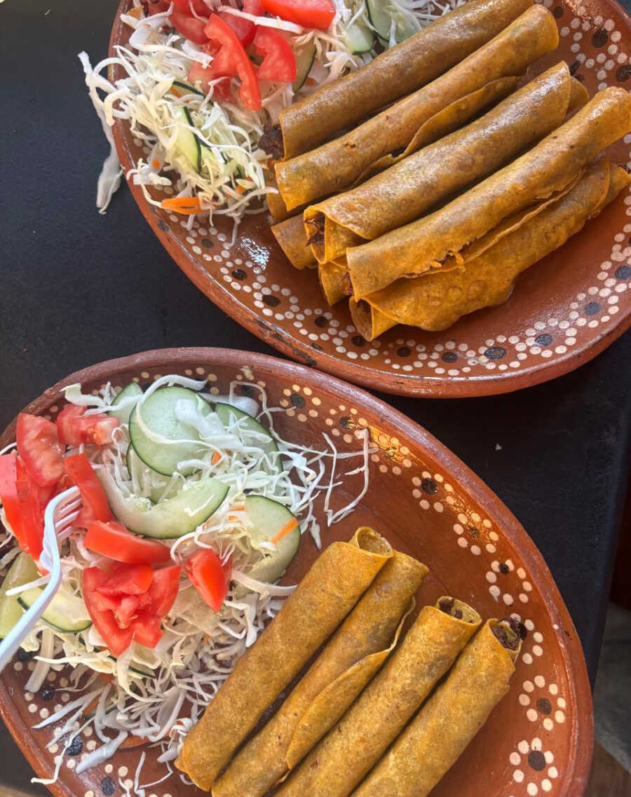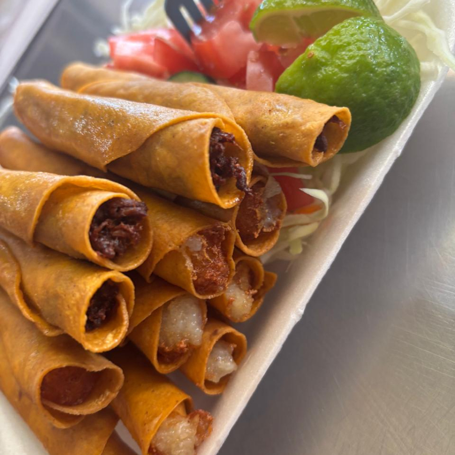 Cada orden incluye 4 flautas, verdura, salsa y guacamole.