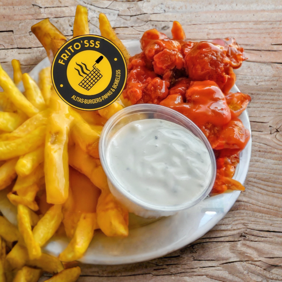 6 pzas de boneless, papas fritas y ranch
