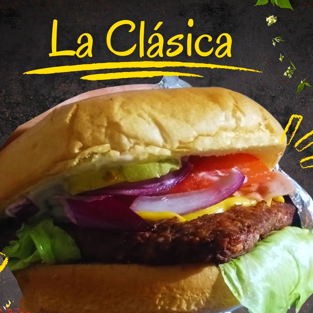 Delicioso y suavecito pan brioche,1/4 de verdadera carne sirloin, queso amarillo, pepinillos,lechuga, tomate, cebolla morada frescos,mayonesa,mostaza,cat