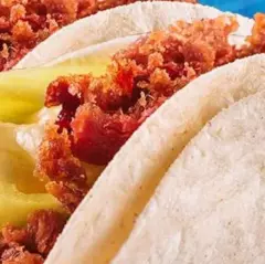 Tiras de pollo sazonado y capeado sobre tortilla de maiz