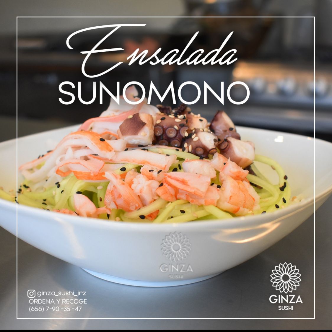 Pepino, harusamen (fideos de arroz), proteína a elegir, ajonjolí, vinagreta.