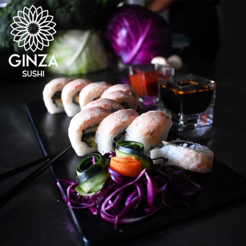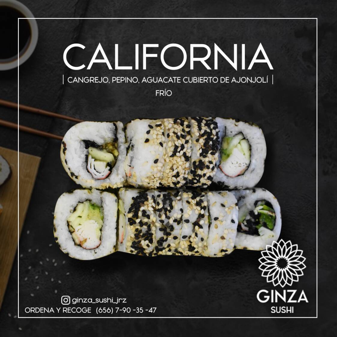 Arroz japonés, cangrejo, pepino, aguacate, cubierto de ajonjolí. Incluye salsa anguila.