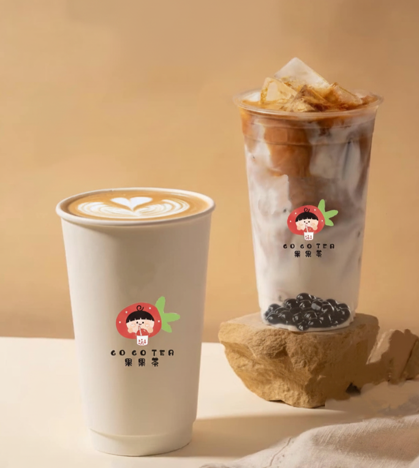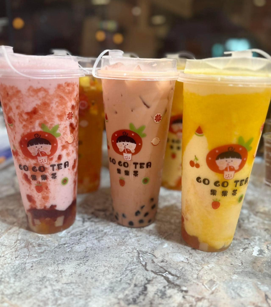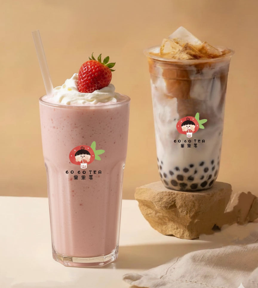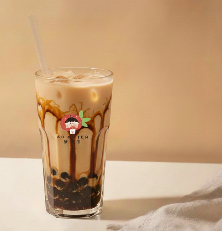 Té con leche y perlas bañadas en jarabe de azúcar morena.