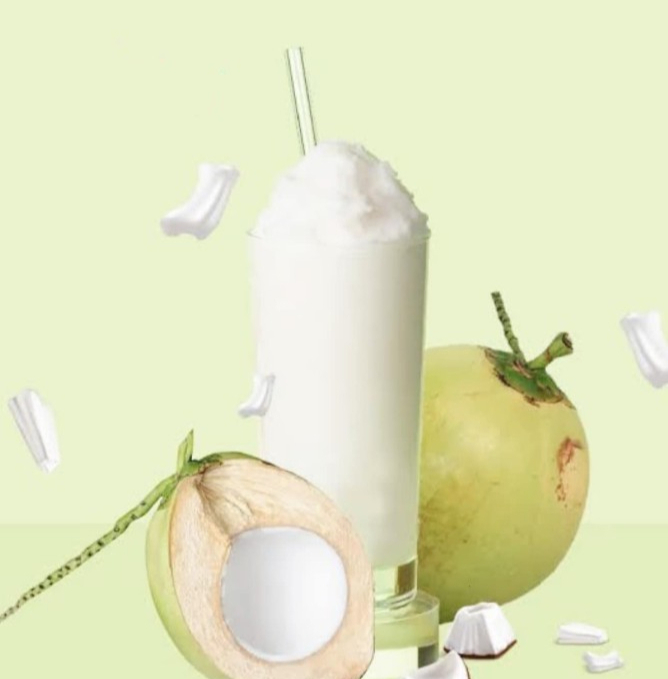 Refrescante batido de coco con leche cremosa y hielo triturado.
