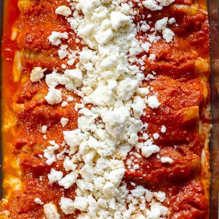 4 enchiladas rojas con queso acompañadas de papas fritas