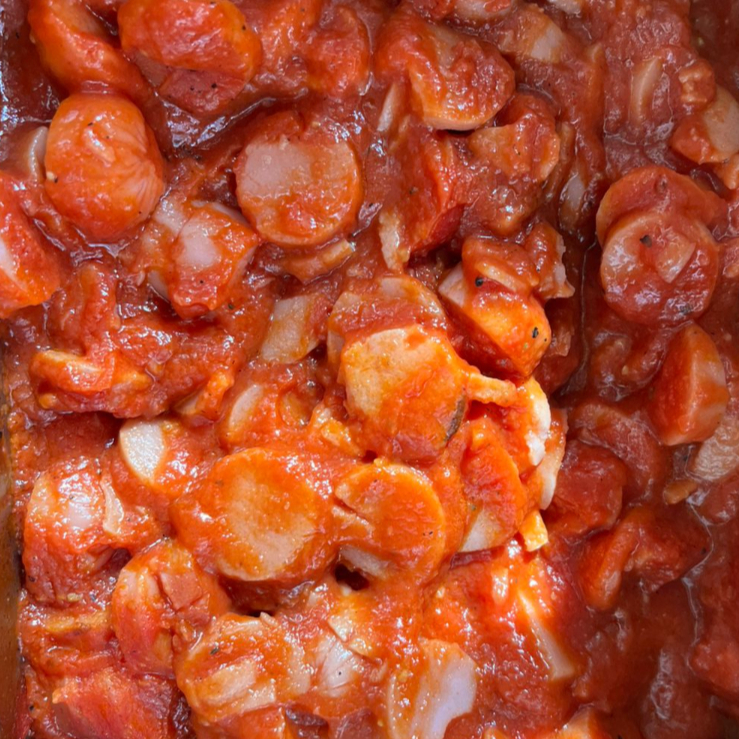 Gordita de harina rellena con guiso de winnie.