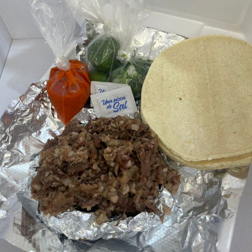 1 porción de cebolla, cilantro, limón y su salsa.