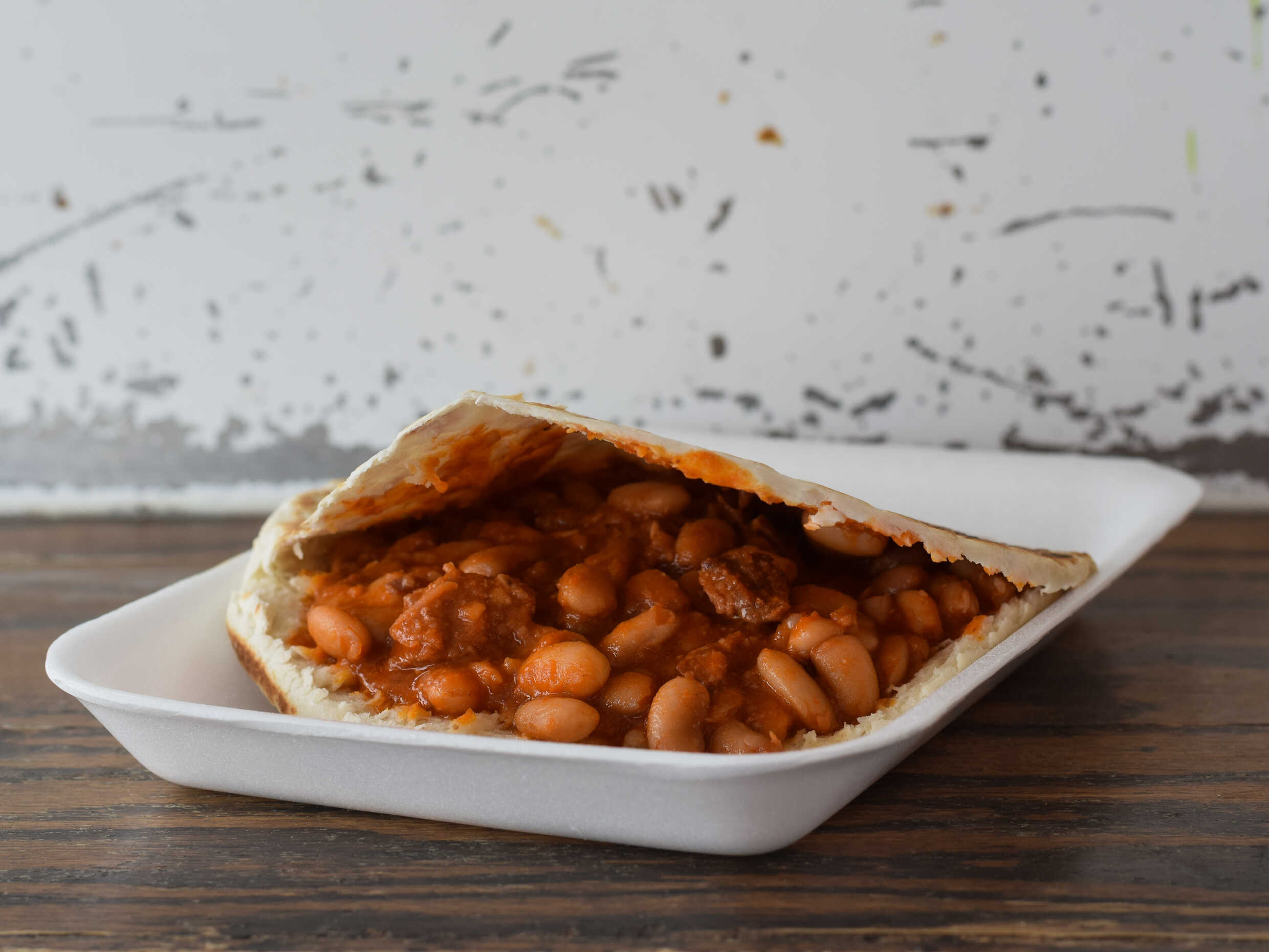 Chicharron de pella, con frijoles graneados en rojo