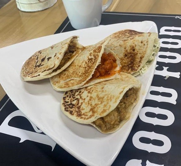 Gordita de harina rellena de prensado