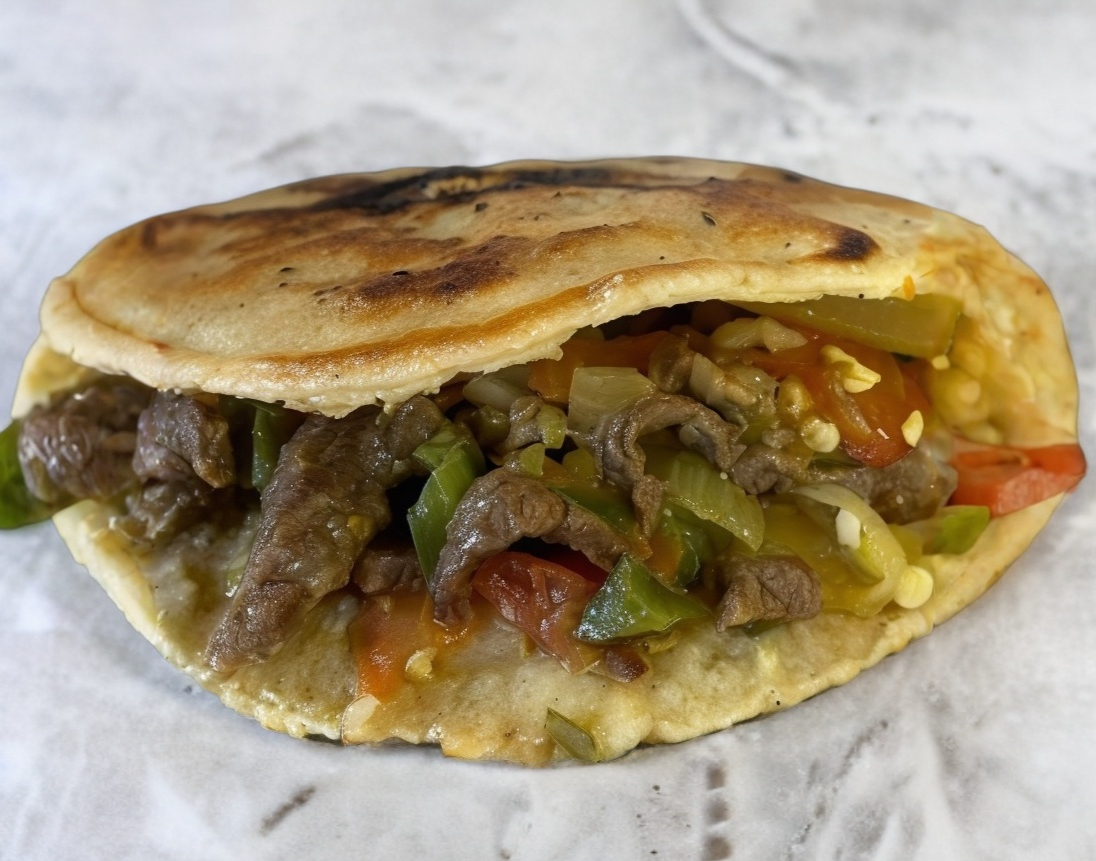 Carne de res con chile jalapeño, cebolla y tomate.