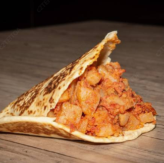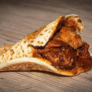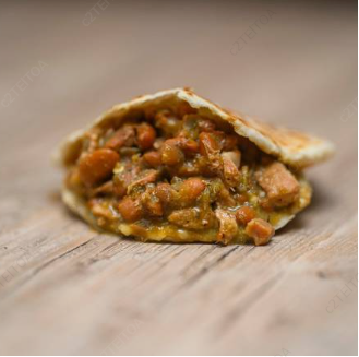 Gordita de harina o maíz rellena de chicharrón prensado.