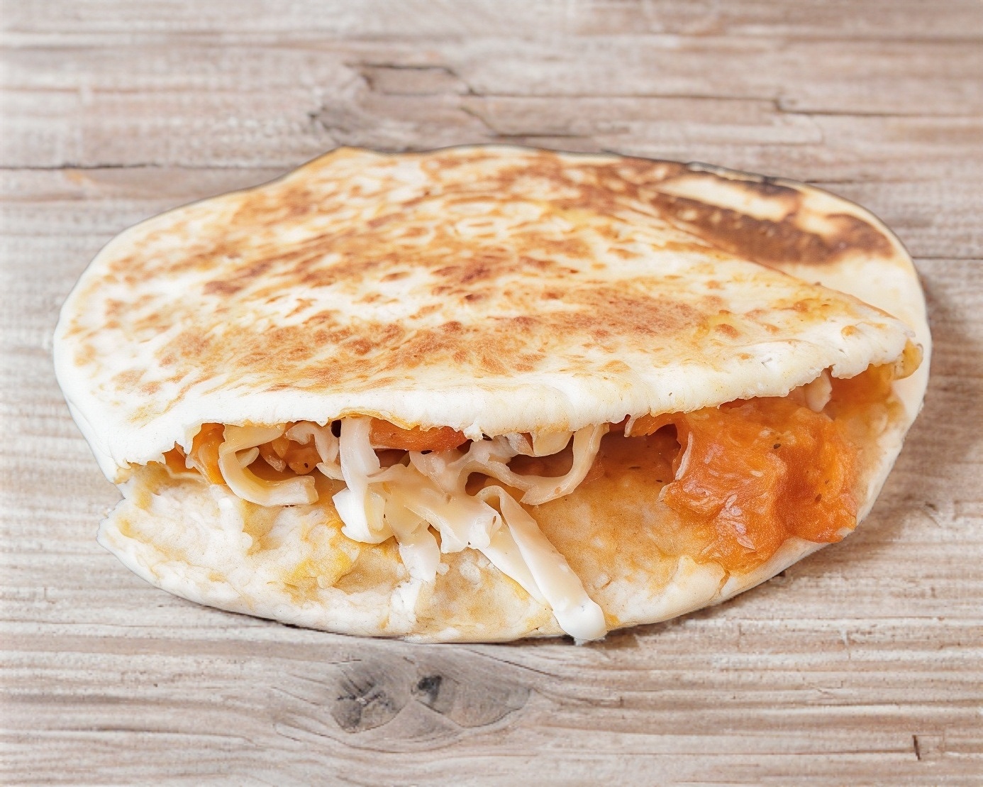 Gordita de harina rellena de chicharron prensado