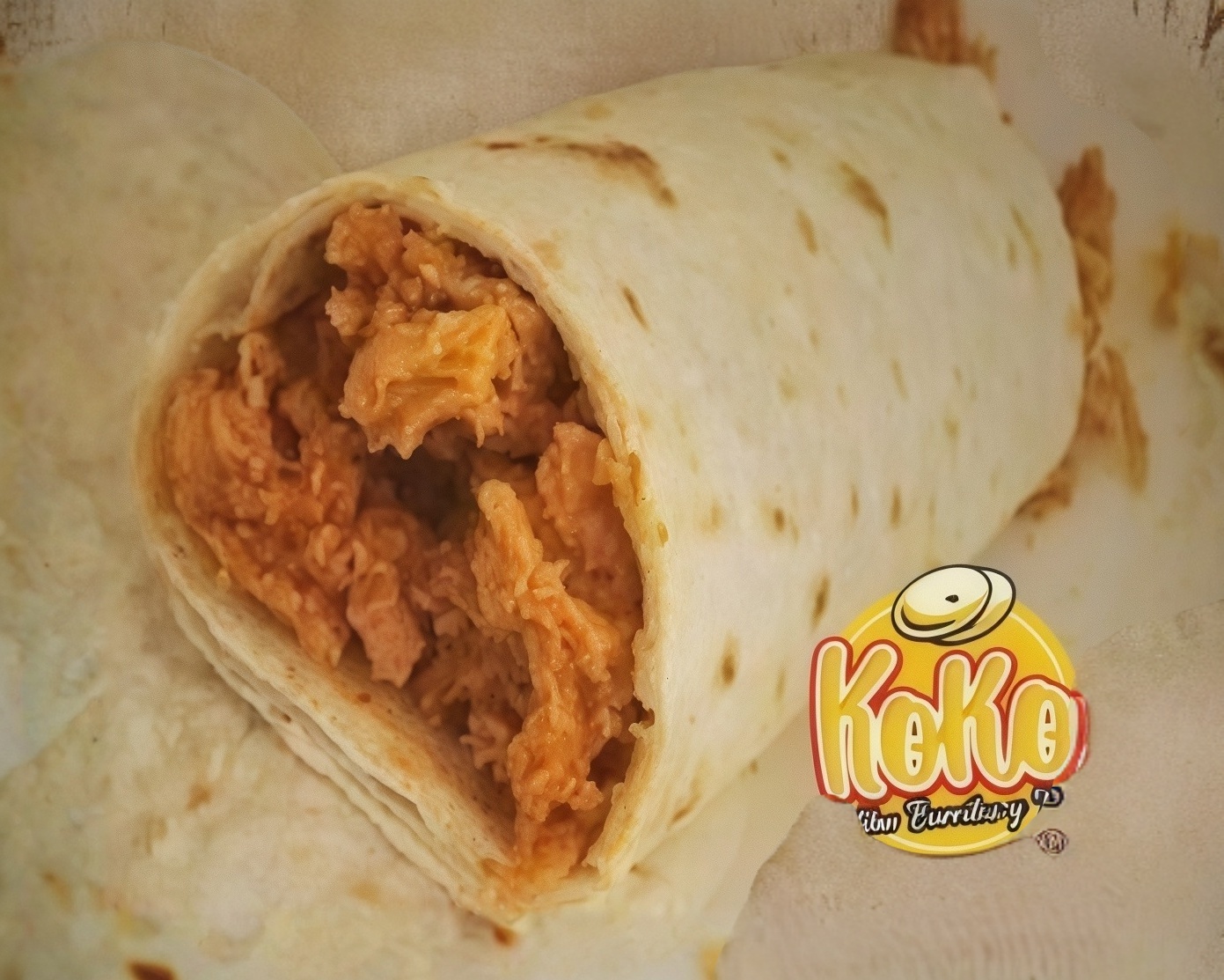 Burrito de tortilla de harina relleno de guisado en chicharron peya