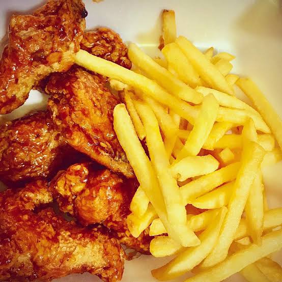 250 gramos de pechuga de pollo bañada en salsa bbq habanera acompañada de papas fritas, verduras y aderezo