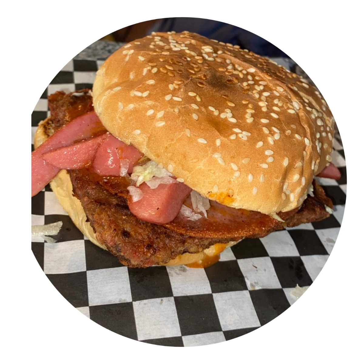 carne, queso amarillo, doritos, winni, jamon, tocineta, , lechuga, tomate, cebolla tatemada, liquidos