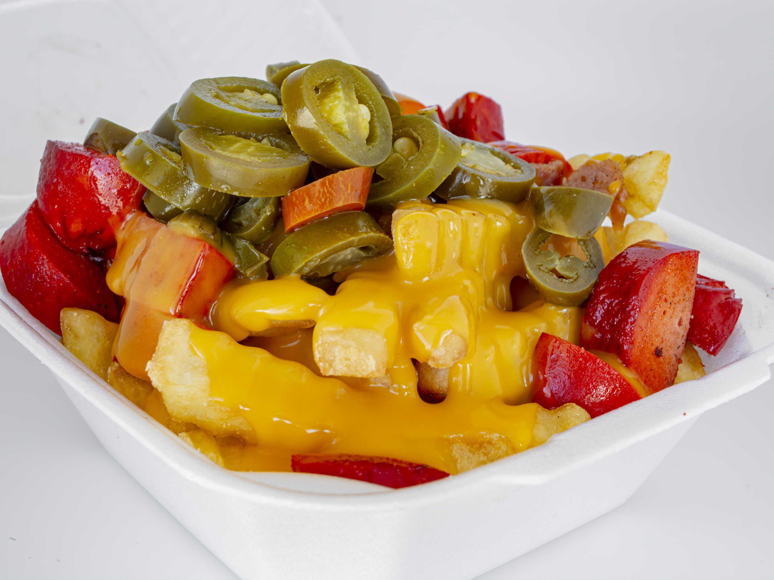 Carne Sirloin,Chorizo,Qeso Blanco,Verduras y Liqiuidos