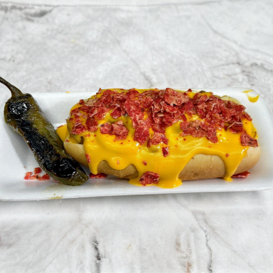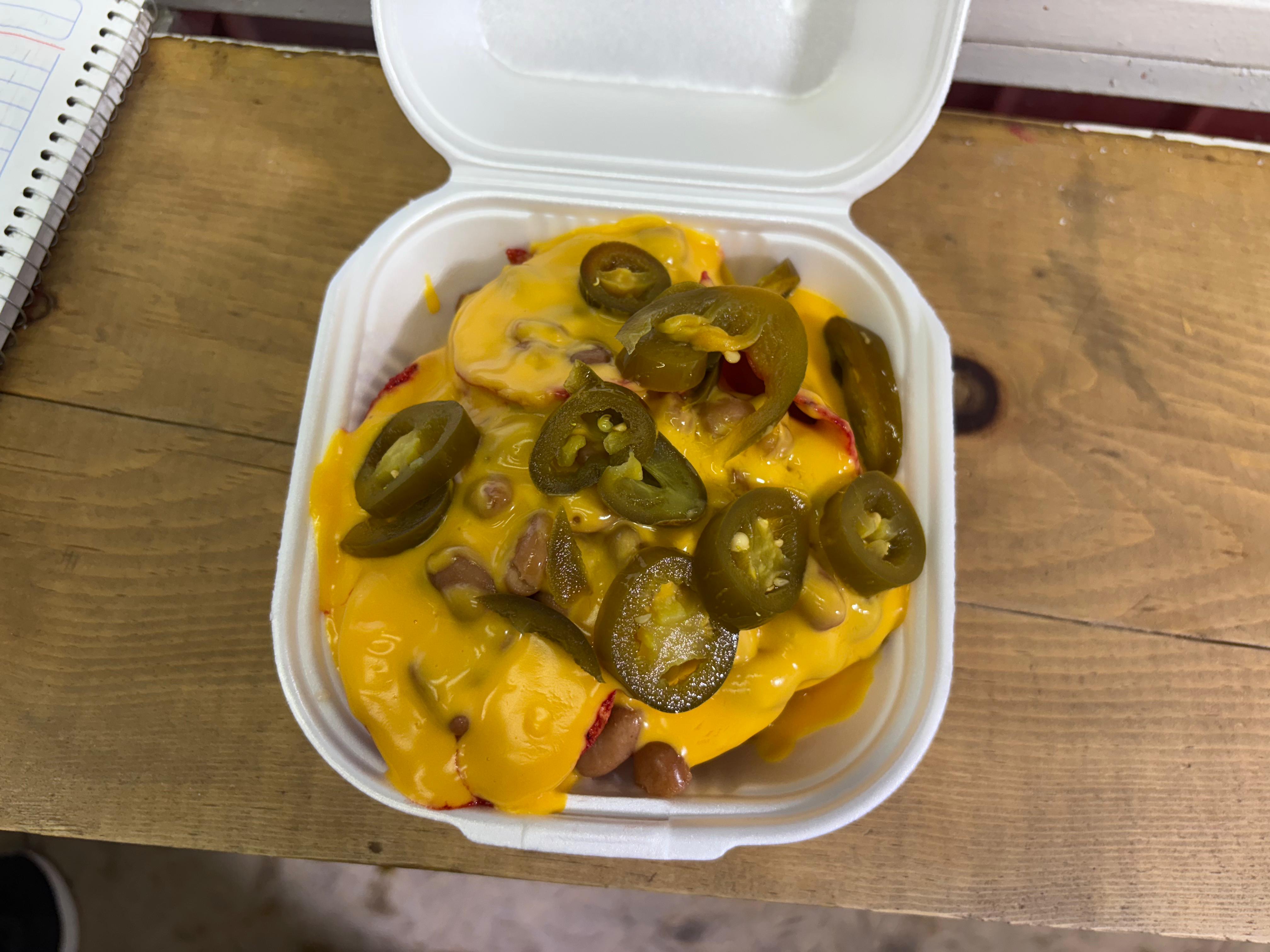Líquidos, pepinillos, winnie, tocino, frijoles, tomate, cebolla y queso de nachos.