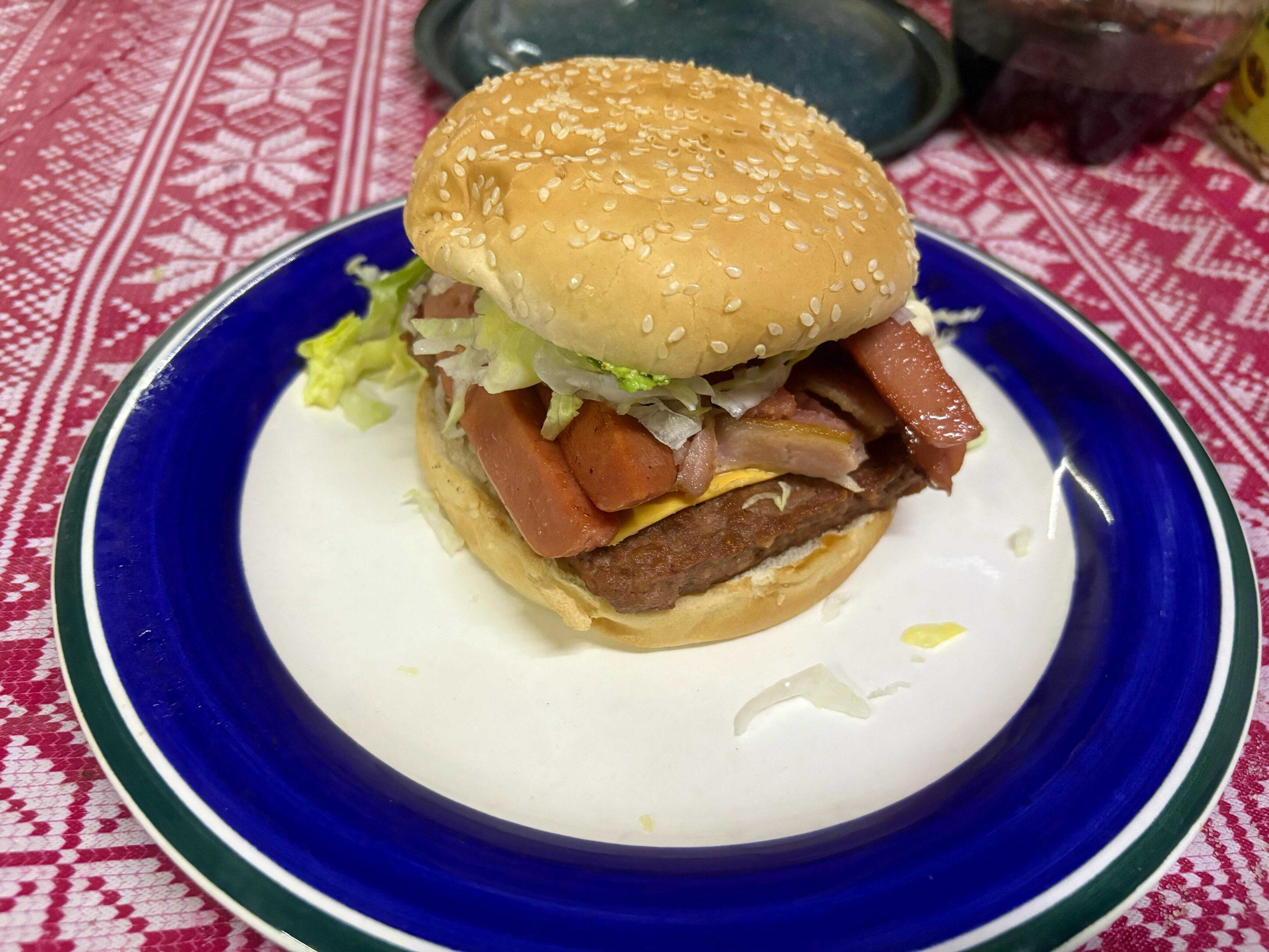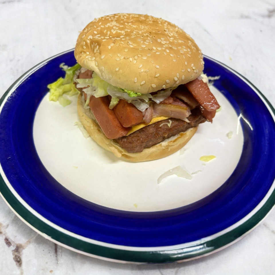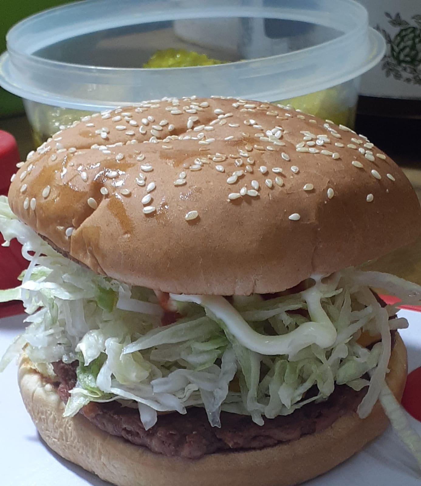 Pepinillos, lechuga, líquidos, queso amarillo, winnie, 2 carnes y aguacate.