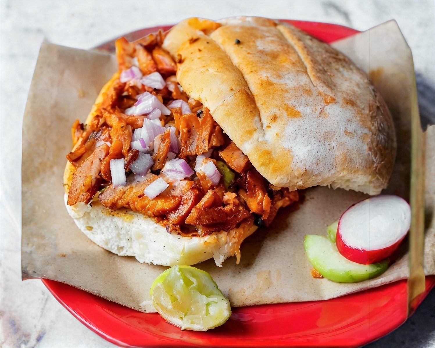 Torta personal , con carne de pastor, aguacate, lechuga y mayonesa.
