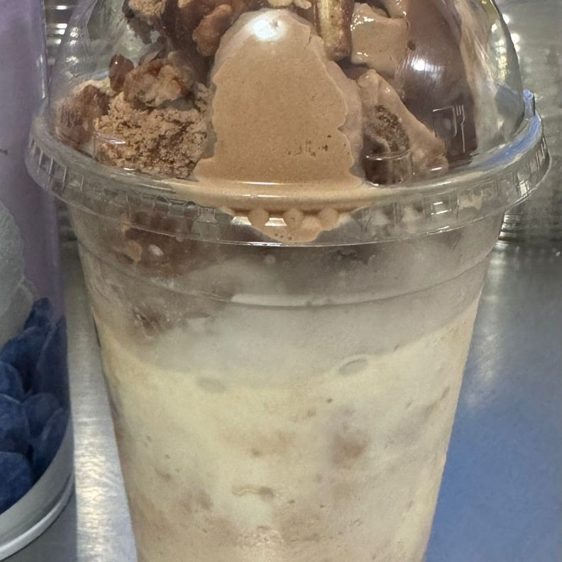 nieve sabor chocolate, cema, chocolate y nuez